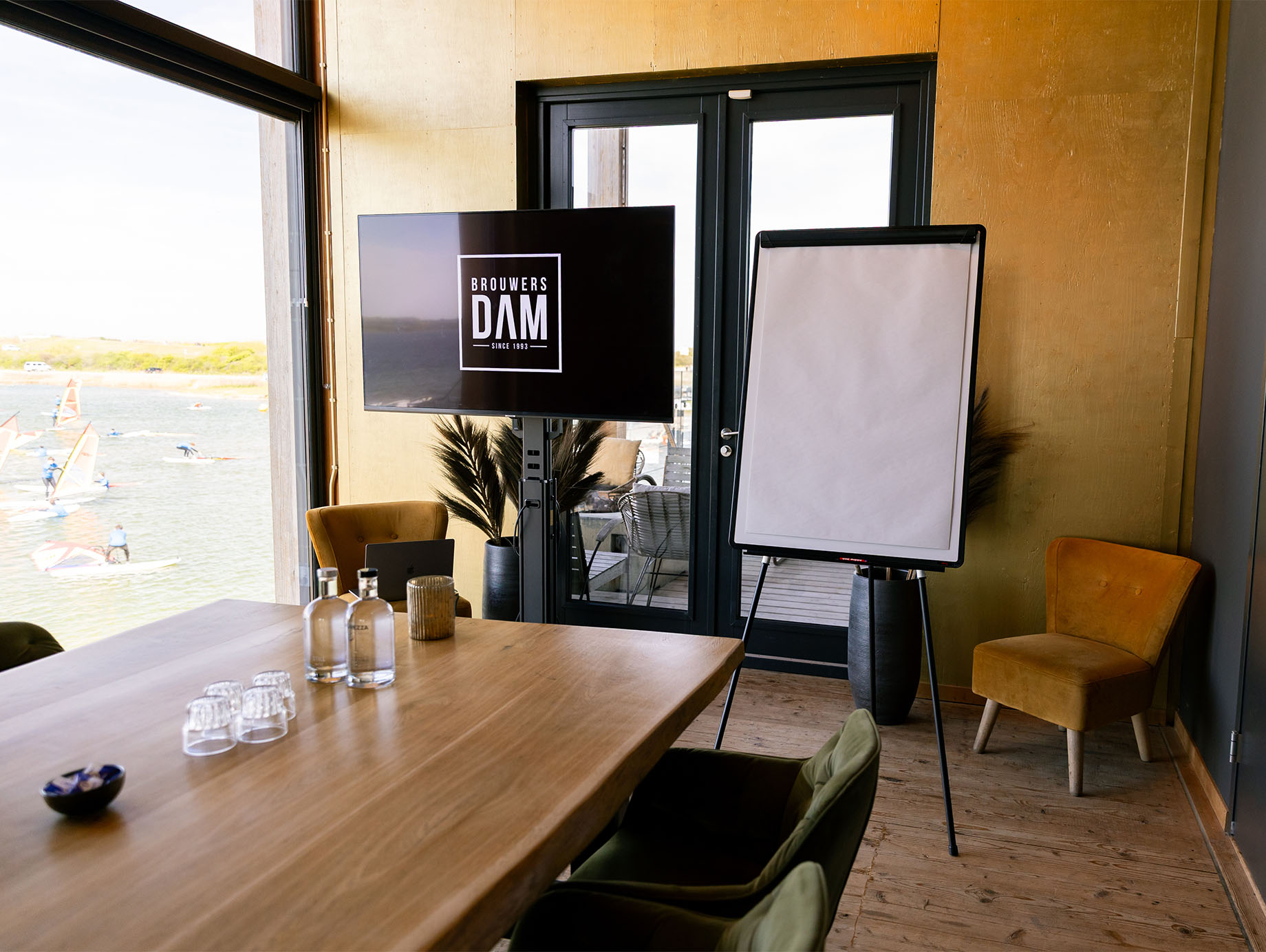 De Sunset Lounge is een knusse maar karaktervolle vergaderruimte met uitzicht over het Grevelingenmeer. Deze inspirerende ruimte bevindt zich op de eerste etage van Restaurant Eat & See en is bereikbaar per trap of lift. Dankzij het hoge plafond en het grote raam met zicht op het windsurfpoeltje oogt de ruimte licht en ruimtelijk, terwijl de huiselijke setting zorgt voor focus en rust.