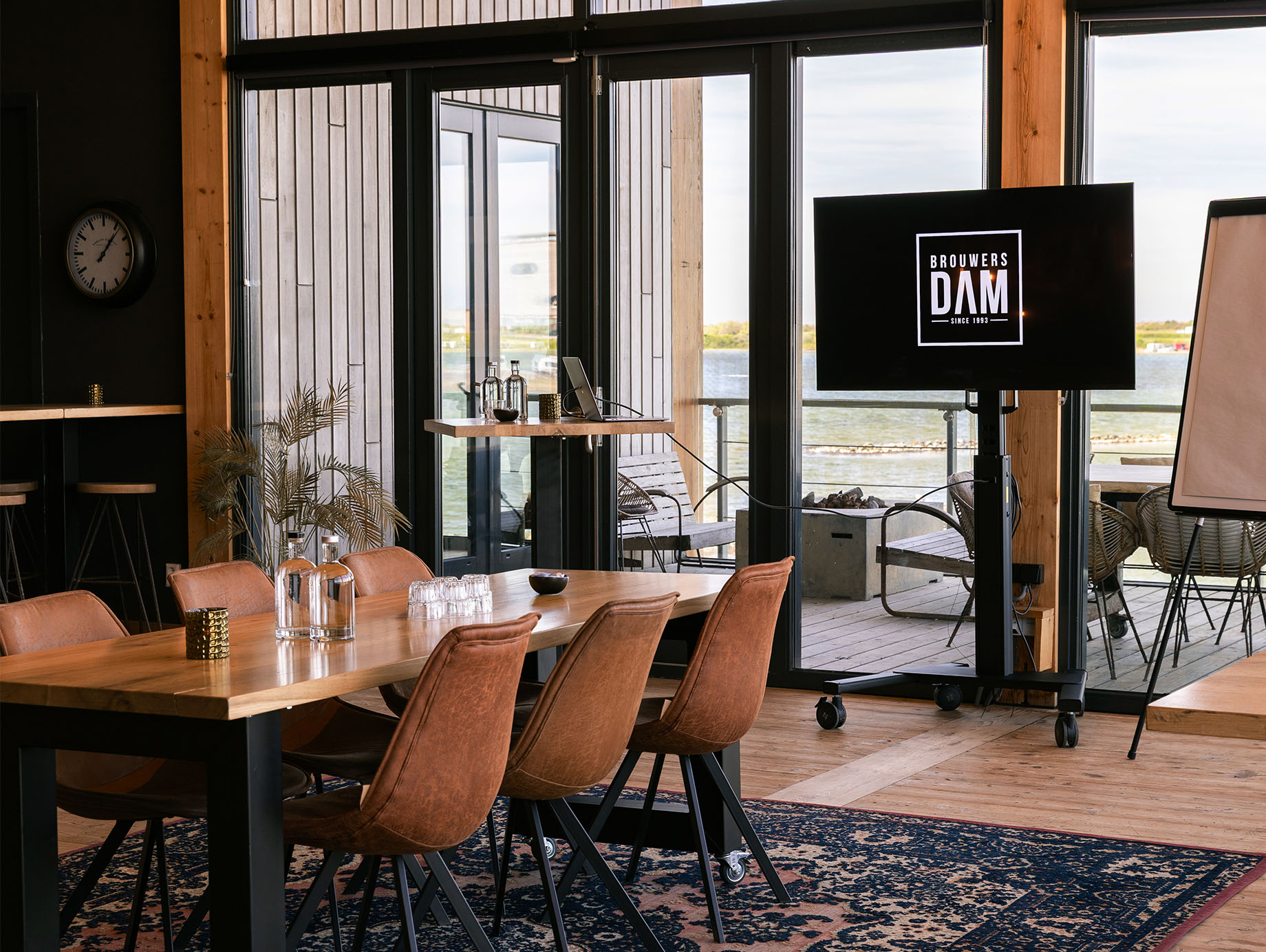 De Waterfront Room is een ruime en afsluitbare vergaderruimte met uitzicht over het Grevelingenmeer. Deze inspirerende ruimte bevindt zich op de eerste etage van Restaurant Eat & See en is bereikbaar per trap of lift. Dankzij de grote raampartijen, het daglicht en het directe uitzicht over het water biedt de Waterfront Room een prettige setting voor bijeenkomsten waarbij ruimte, comfort en focus centraal staan.