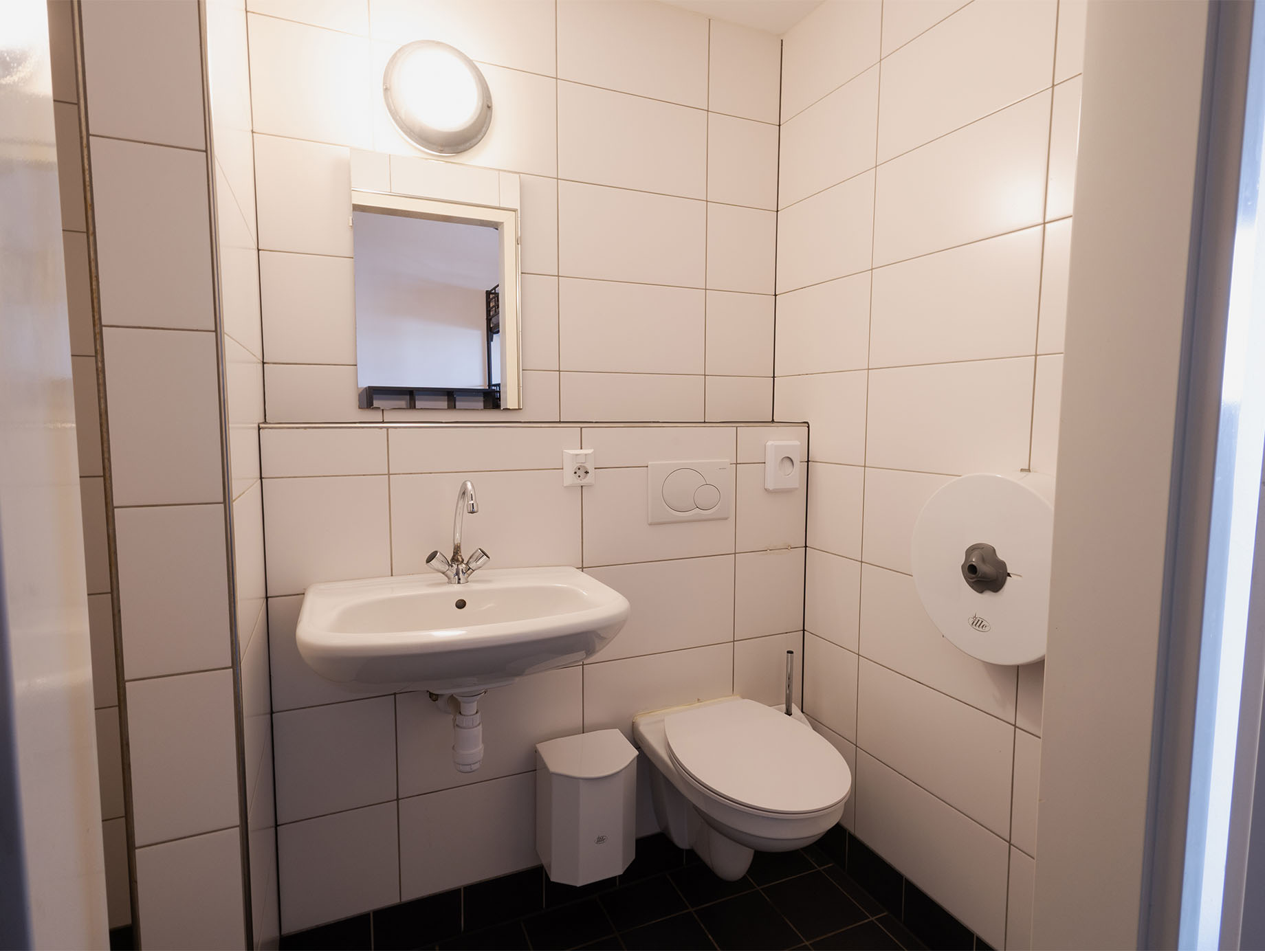 De kamer beschikt over een eigen badkamer met douche, wastafel en toilet. Daarnaast zijn twee stoelen en een salontafeltje aanwezig als eenvoudige zitplek.