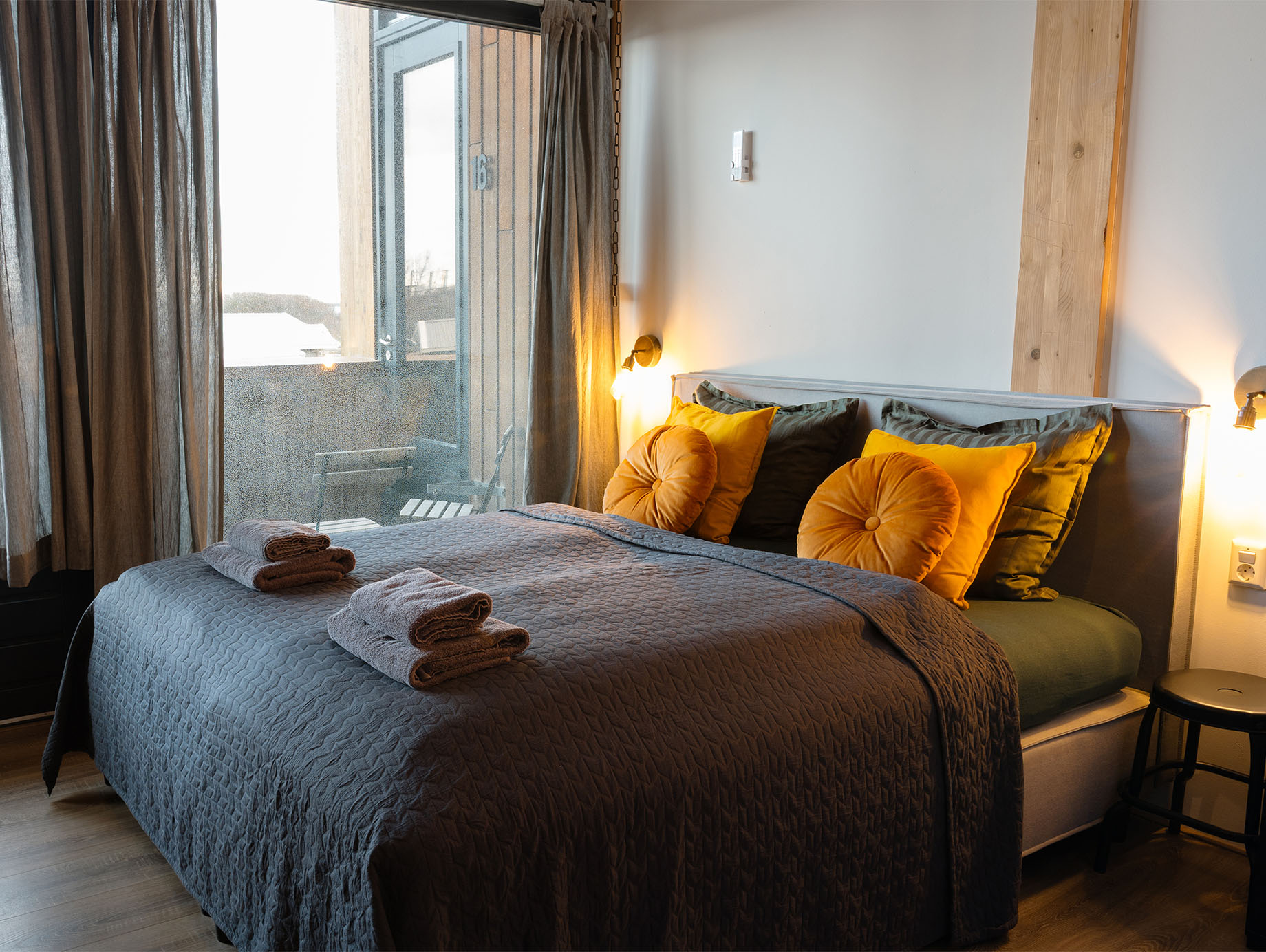 Deze Lake Room van 22 m² voor vier personen is bereikbaar via het gedeelde balkon met zitplekjes en biedt een stijlvolle ruimte met een hoog plafond en grote raampartijen die zorgen voor een lichte en ruimtelijke uitstraling.