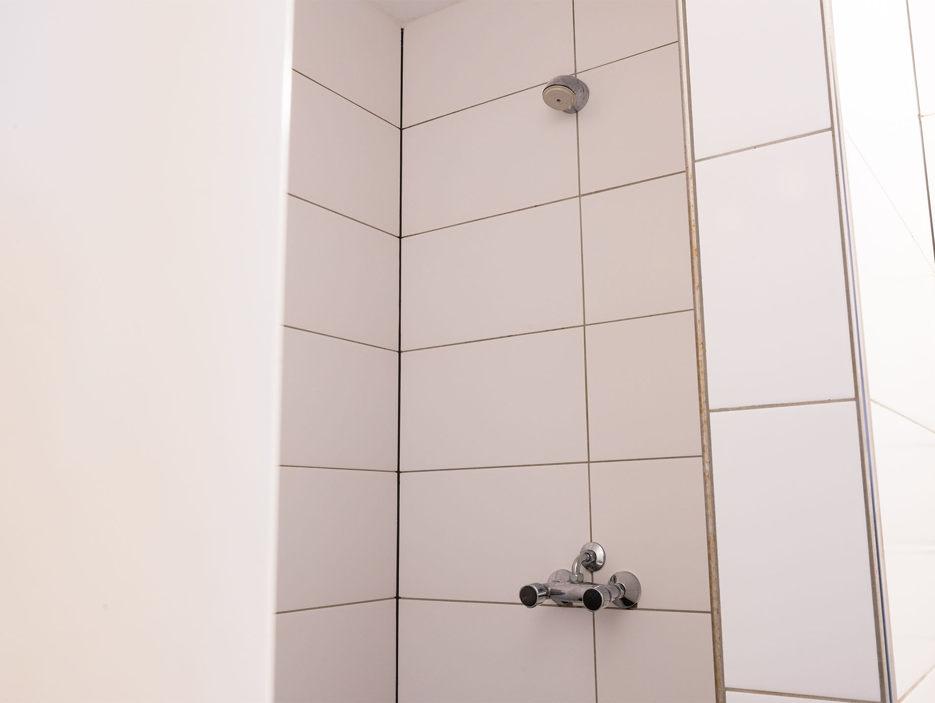 De kamer beschikt over een eigen badkamer met douche, wastafel en toilet. Daarnaast zijn twee stoelen en een salontafeltje aanwezig als eenvoudige zitplek.